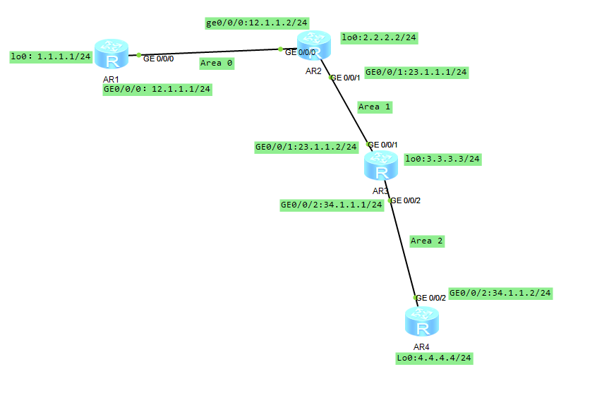 1、如图所示,AR1和AR2在Area0这个区域,但AR2又ABR,它又是和AR3在Area1区域,AR3又是和AR4在Area2区域,因为AR3也是一台ABR。具体情况如下: