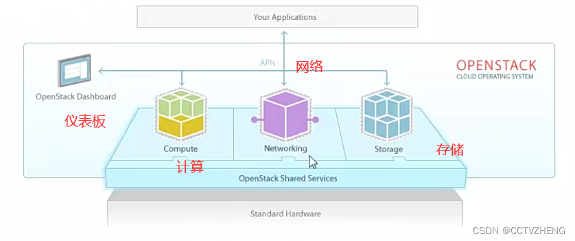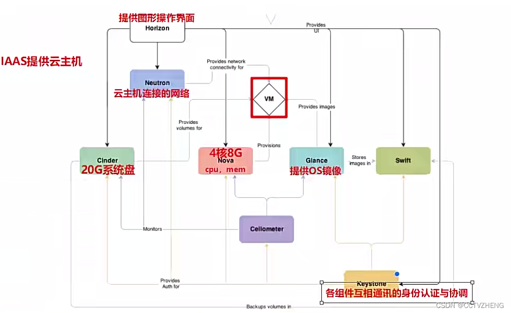 object Storage 对象存储服务Block Storage块存储服务ldentity身份认证服务lmage Service镜像服务Dashboard Ul界面Metering测量orchestration部署编排Database Service数据库服务......