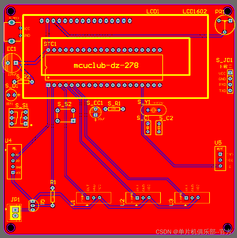 由原理图导出,封装很大一部分都是作者自己绘制,不提供封装库,只提供连接好的源文件。中间有一个项目编号,隐藏在单片机底座下,插入单片机后不会看到。