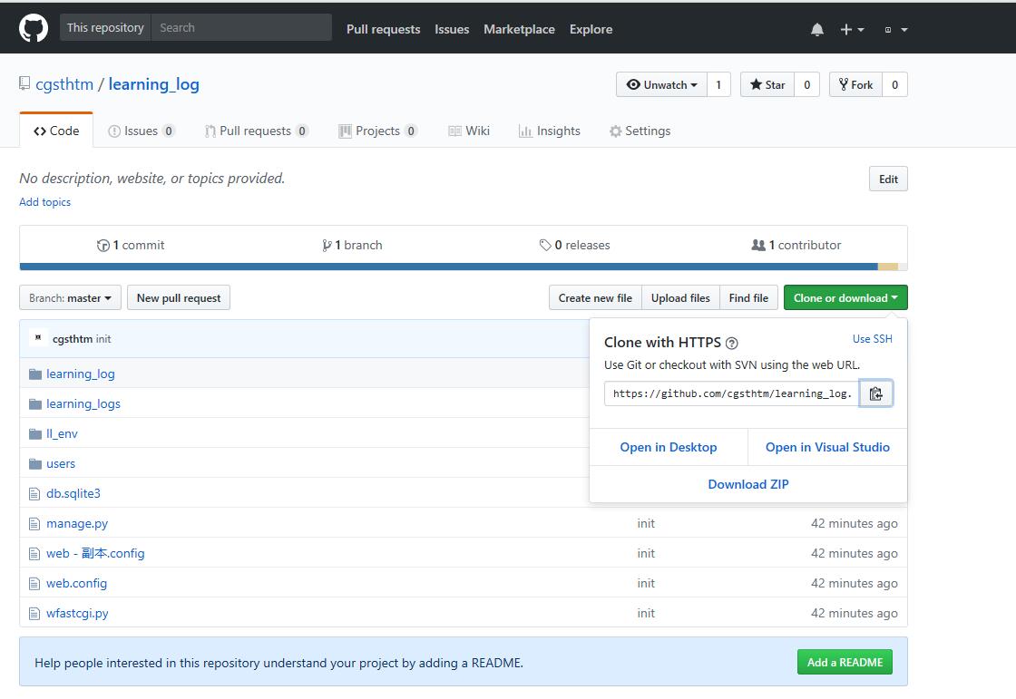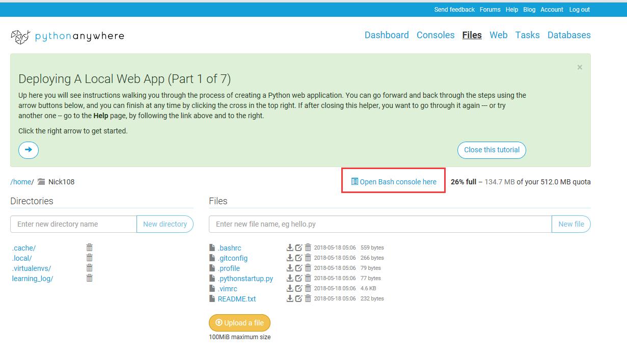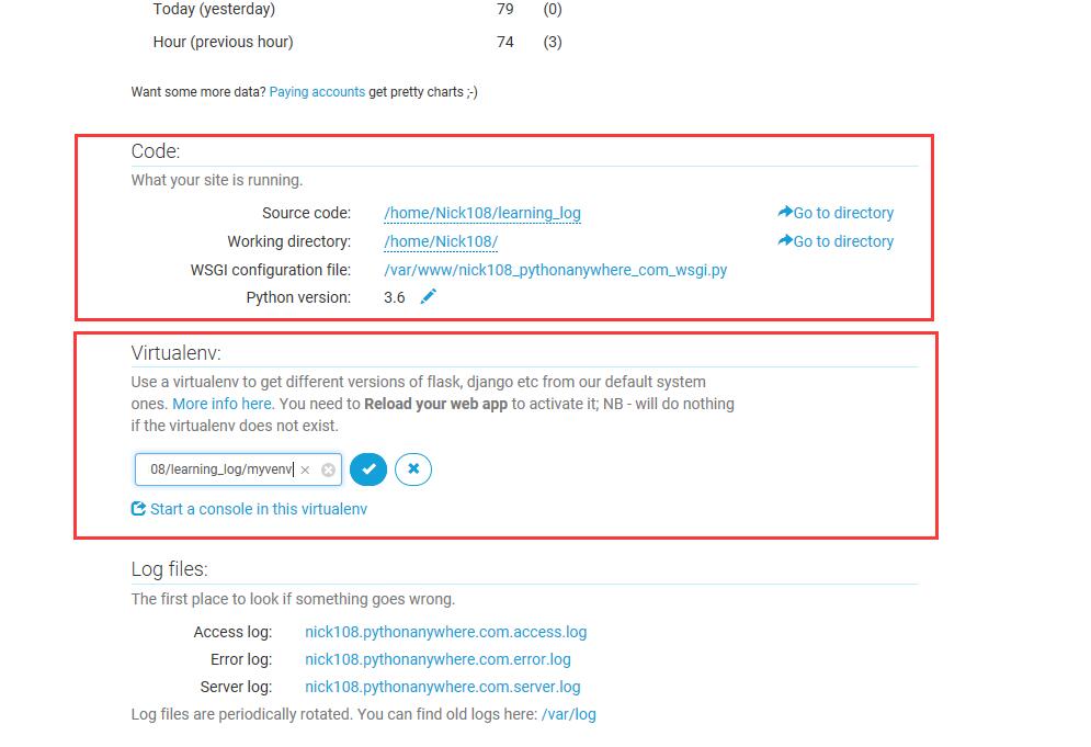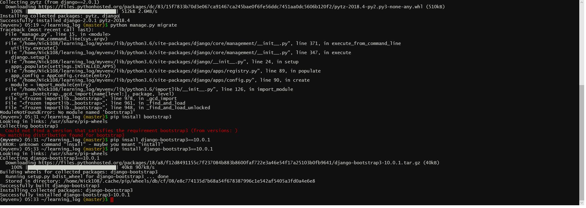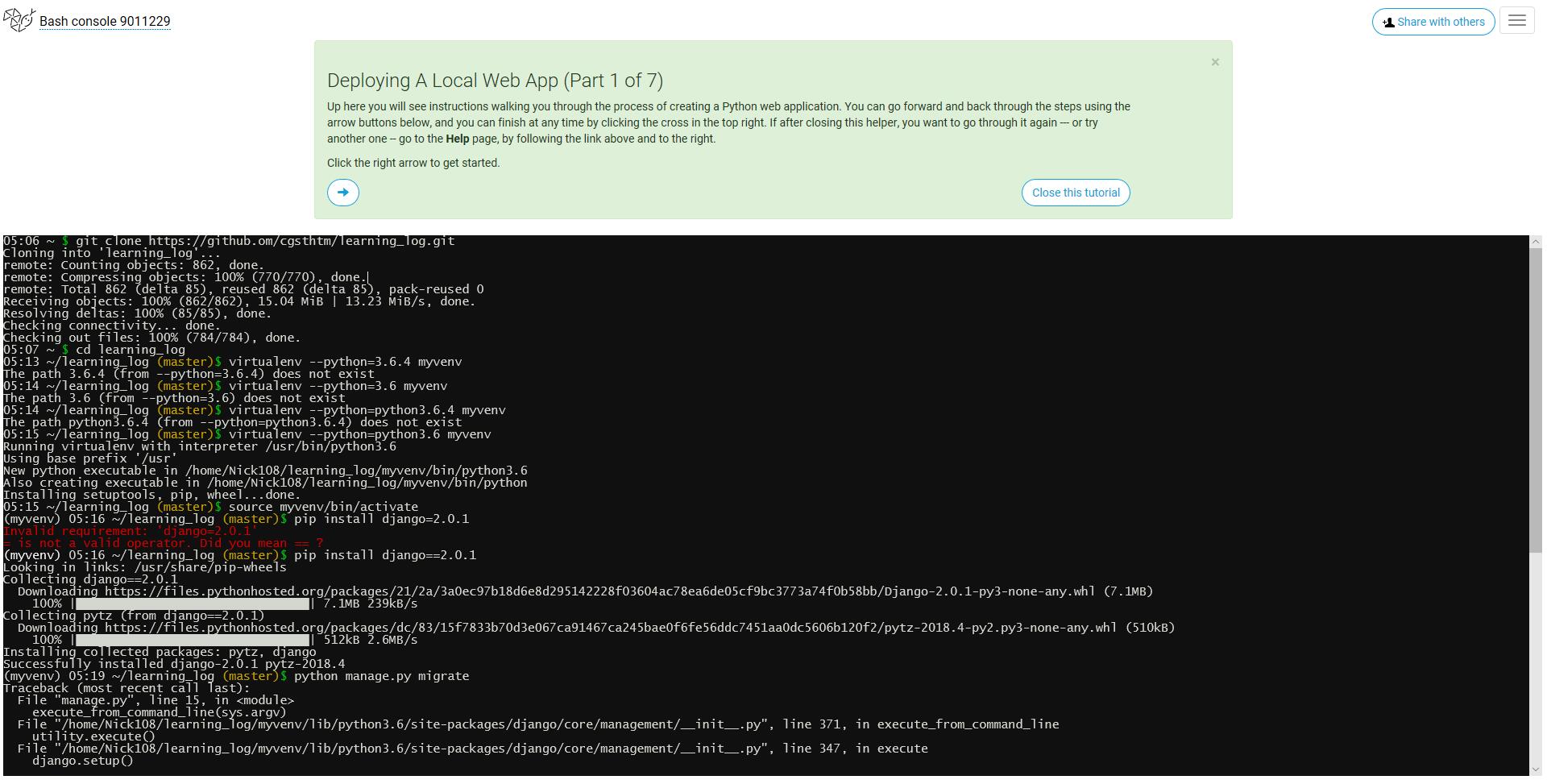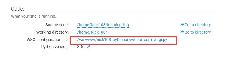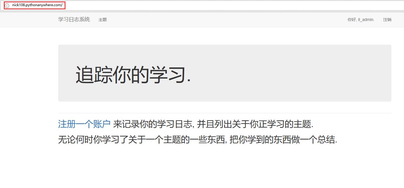 源码:/home/Nick108/learning_log 为第二步从github克隆的项目learning_log
