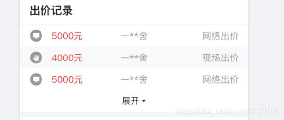 项目需求最近需要在一个页面增加出价记录列表功能,ui图如下: