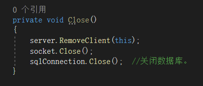 3、在检查整体代码之后,发现在对服务器端关闭时的close方法里加入server.RemoveClient(this); 好像就可以多个注册了,但具体的原因不明。