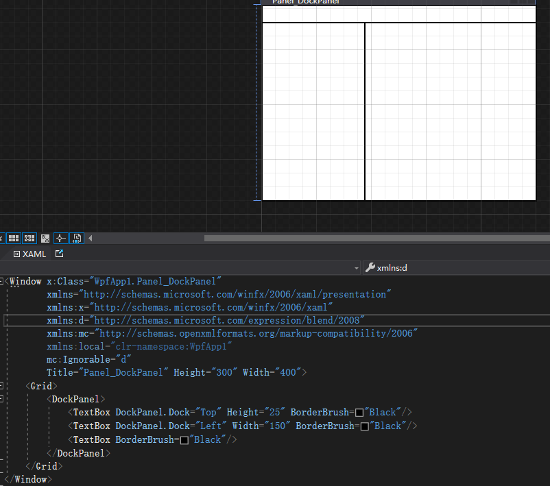 DockPanel内的元素可以通过Left、Top、Right、Buttom四个值来指定元素会指定方向累积,DockPanel还有一个重要的属性,bool类型的LastChildFill,它的默认值是True。当LastChildFill属性值为True时,DockPanel内最后一个元素的DockPanel.Dock属性值会被忽略,这个元素会把DockPanel内部所有剩余控件充满。(这个布局控件的Dock和小编之前学的Dock属性用法差不多)