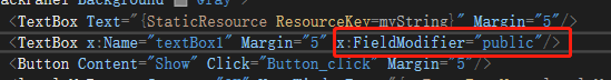 x:FieldModifier作用是用来改变引用变量访问级别的,所以使用x:FieldModifier的前提是这个标签同时也使用x:Name。