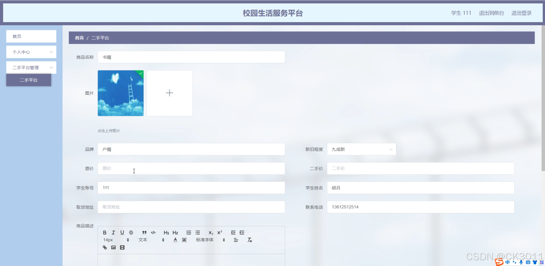 本项目致力于打造一个集餐饮预订、物品租赁、二手交易、学习辅导、活动发布等多功能于一体的校园生活服务平台。旨在提升校园生活的便捷性,促进资源的循环利用,增强校园社区的互动性和凝聚力。