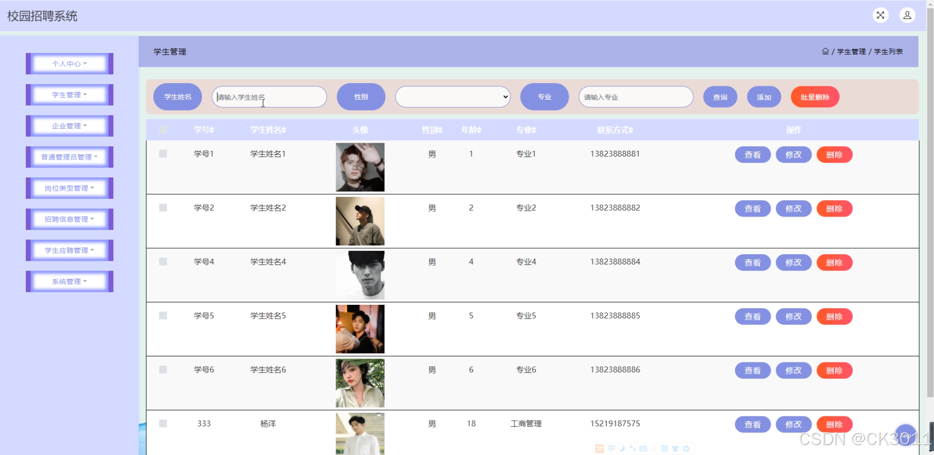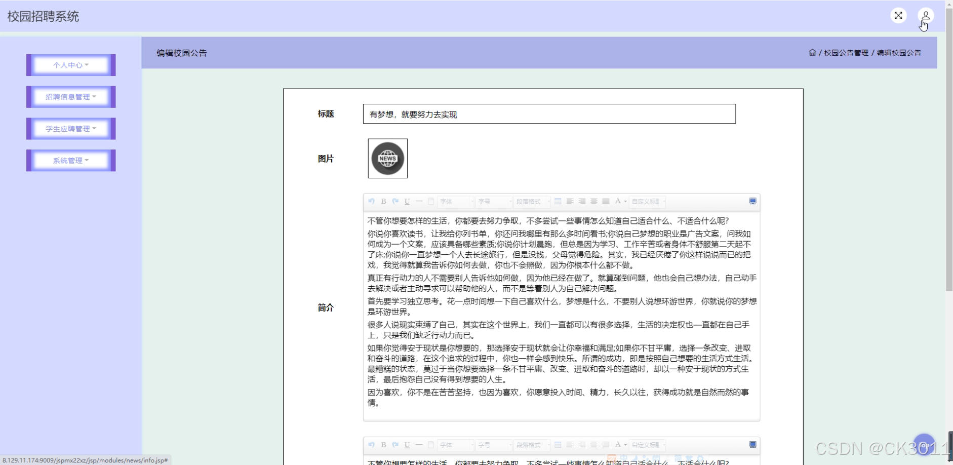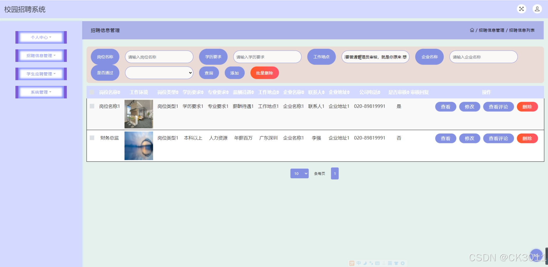 - 个性化推荐:构建学生-企业双向画像,实现岗位智能推荐与人才动态追踪;