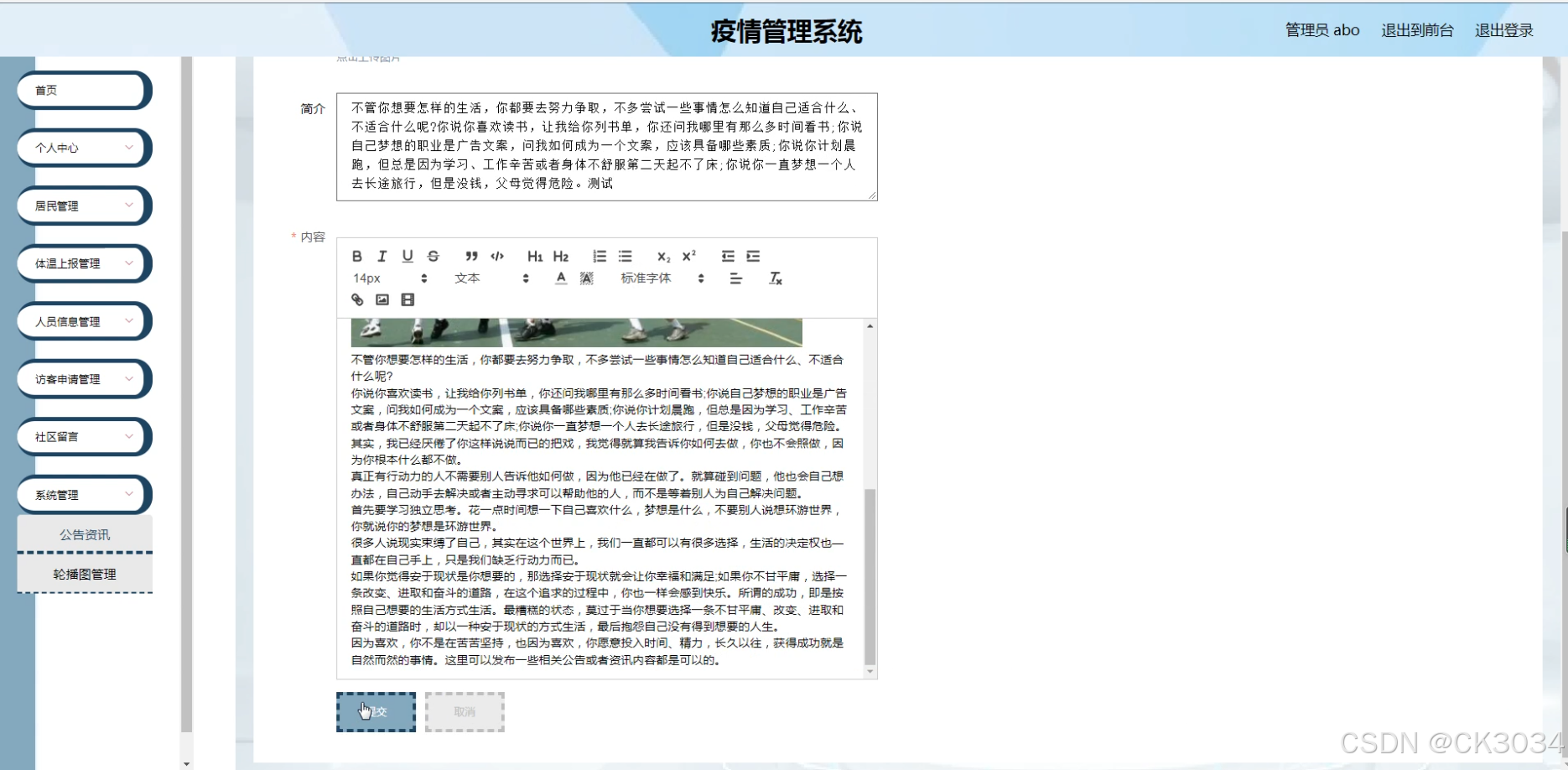 本研究将围绕疫情管理系统的设计与开发进行,包括需求分析、系统设计、数据库构建、功能实现与测试等环节。系统需具备疫情数据收集、分析、预警、信息发布等功能,以实现对疫情的科学管理和有效控制。