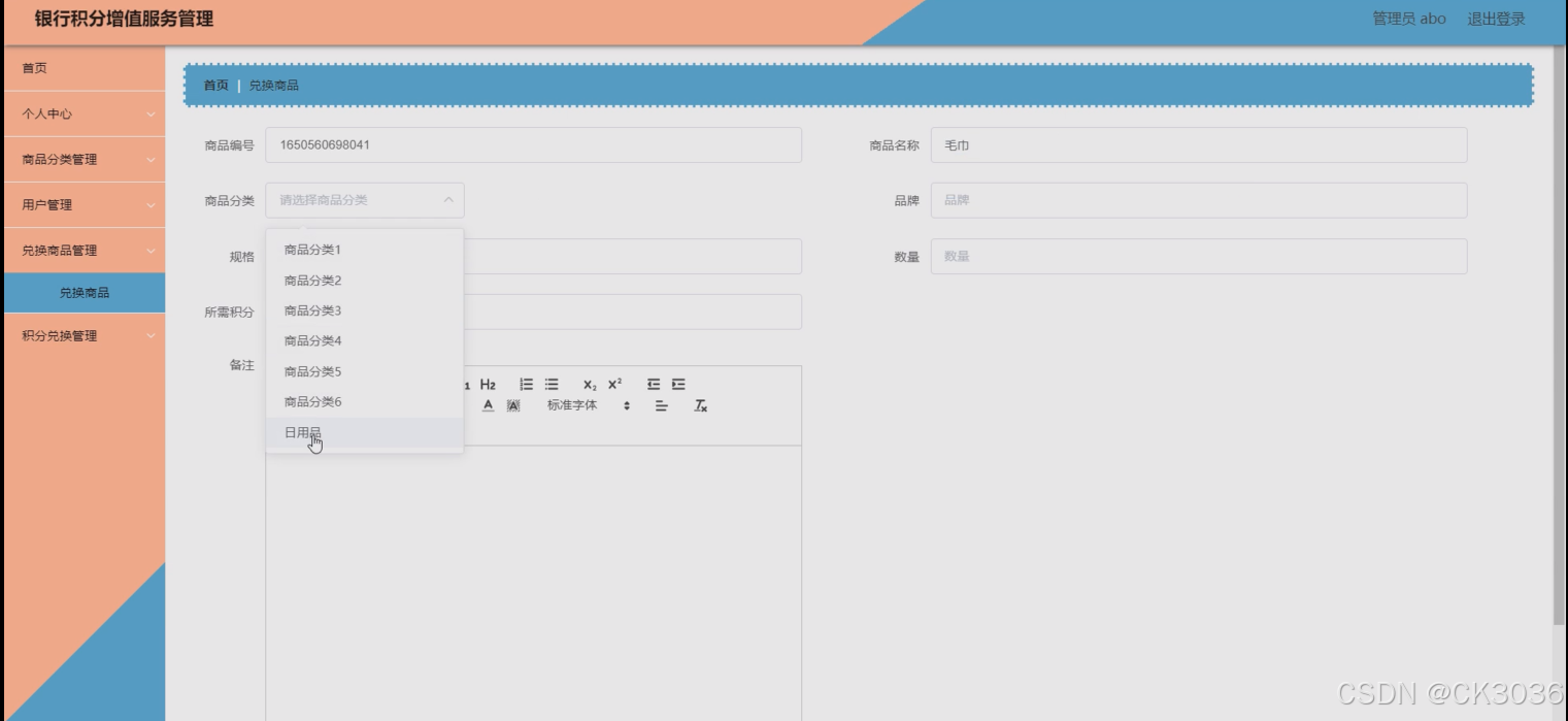 - 商品分类管理:旨在通过合理的分类体系,帮助用户快速定位感兴趣的兑换商品。