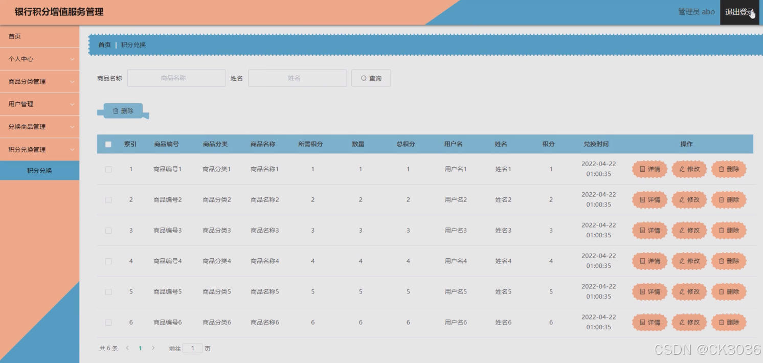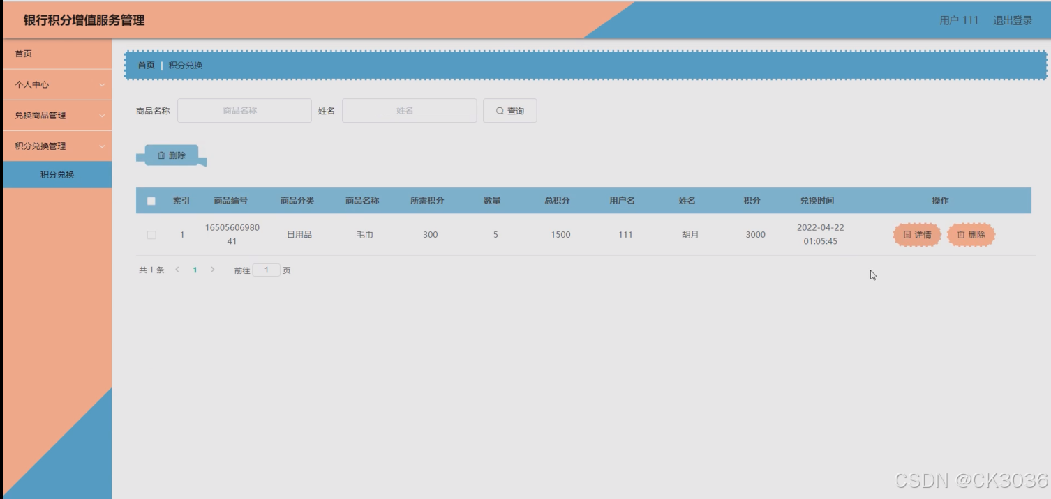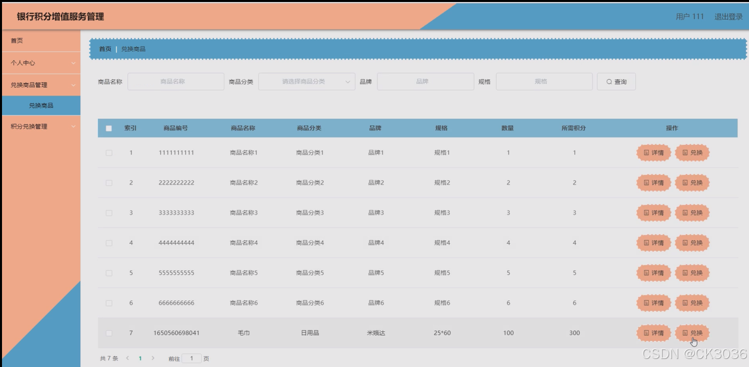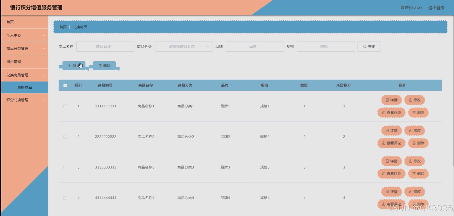 - 开发出一套功能完善、操作便捷的银行积分增值服务管理系统,实现用户管理、兑换商品管理、商品分类管理以及积分兑换等核心功能。