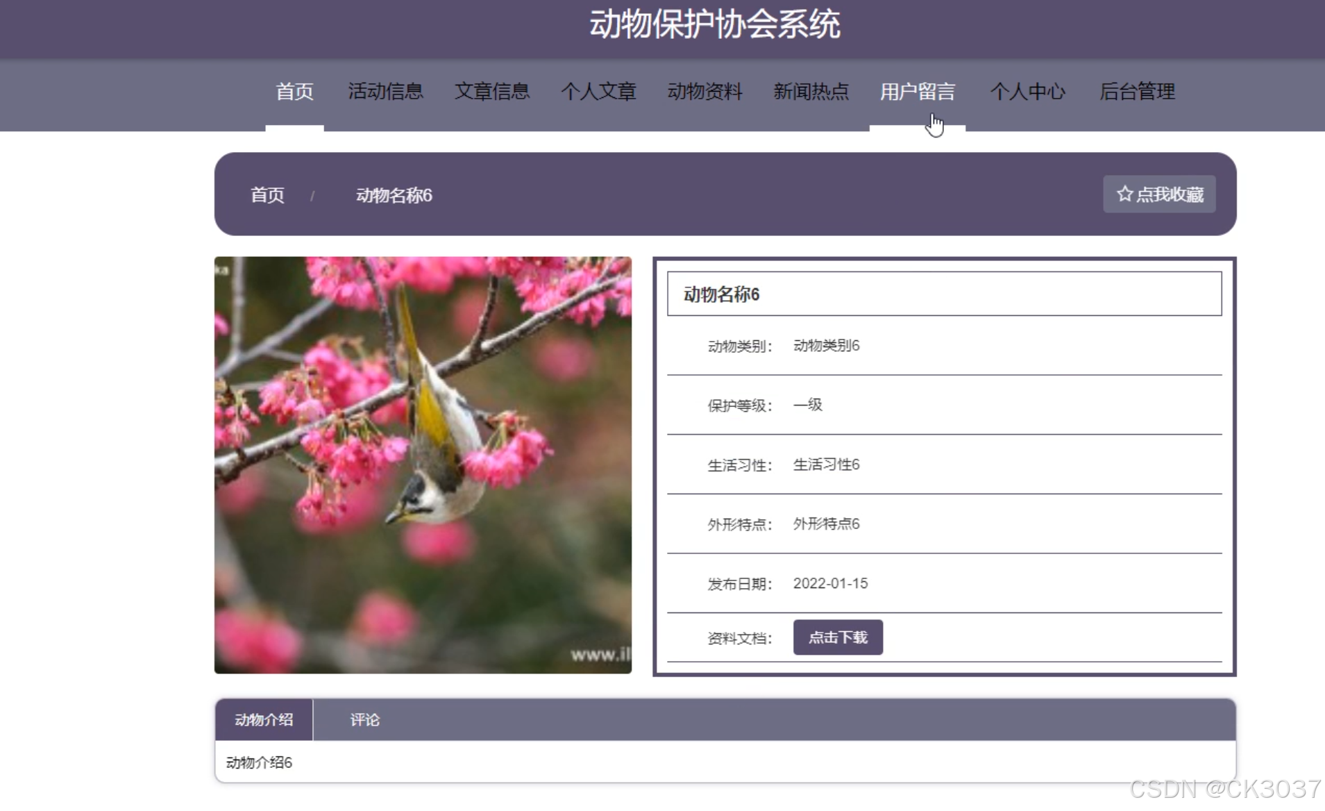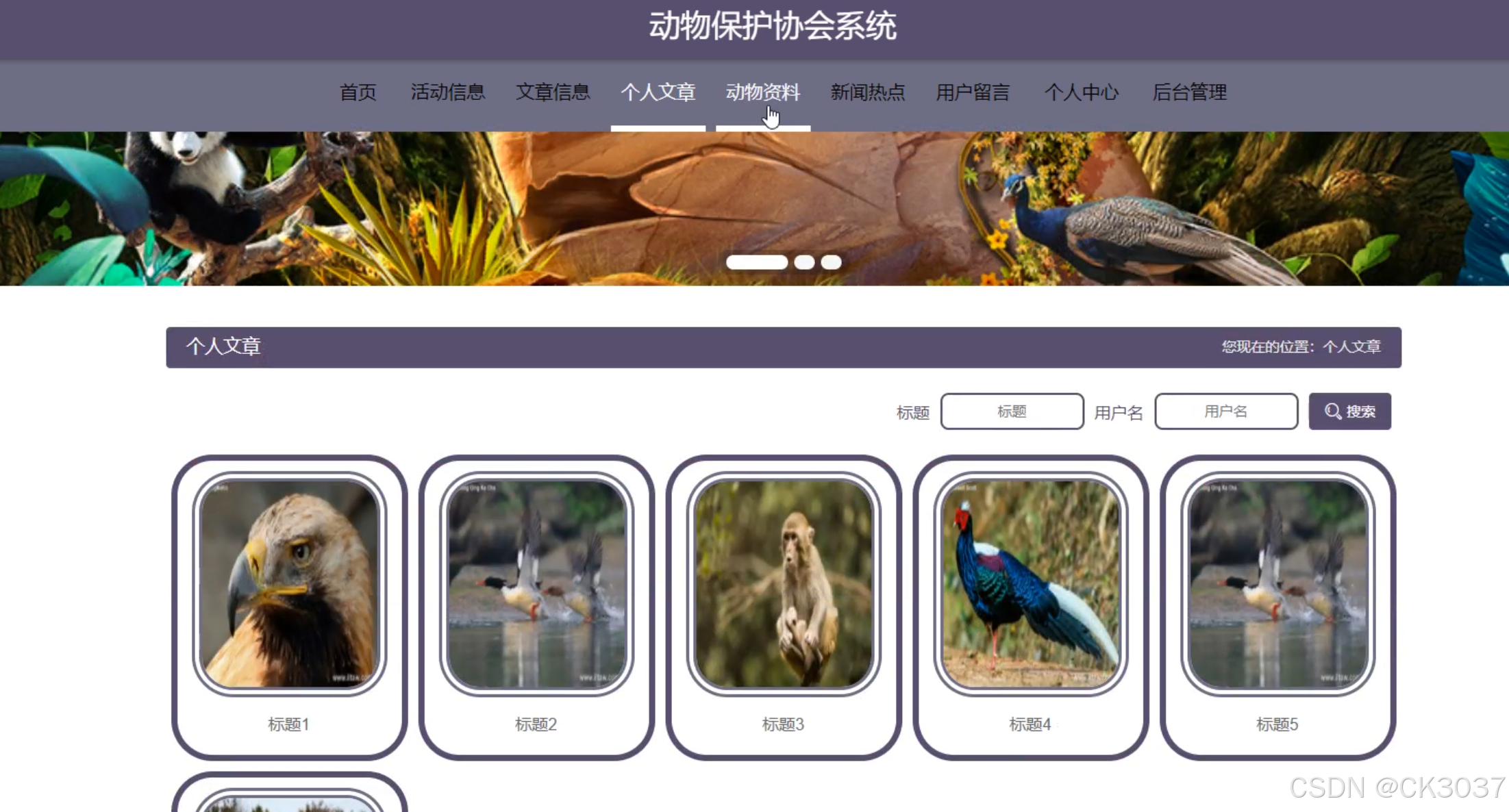 - 宣传资料发布模块:协会可以发布动物保护相关的宣传资料,如海报、宣传册等,以提高公众对动物保护的认识和理解。