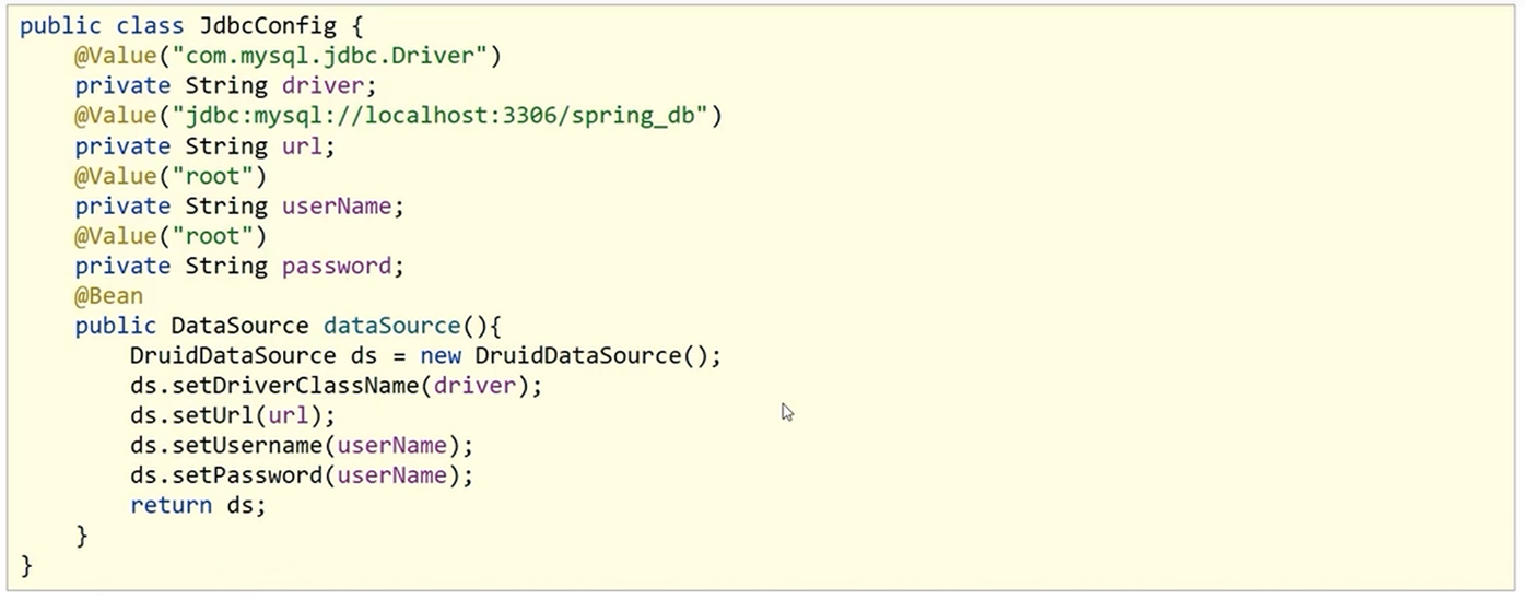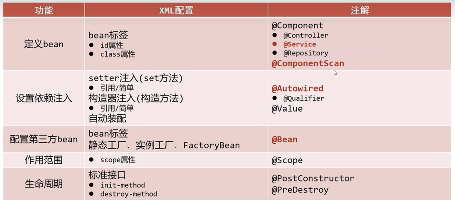 - @Configuration的作用就是告诉Spring该类是一个配置类, 解析后的内容与xml模板的内容一致