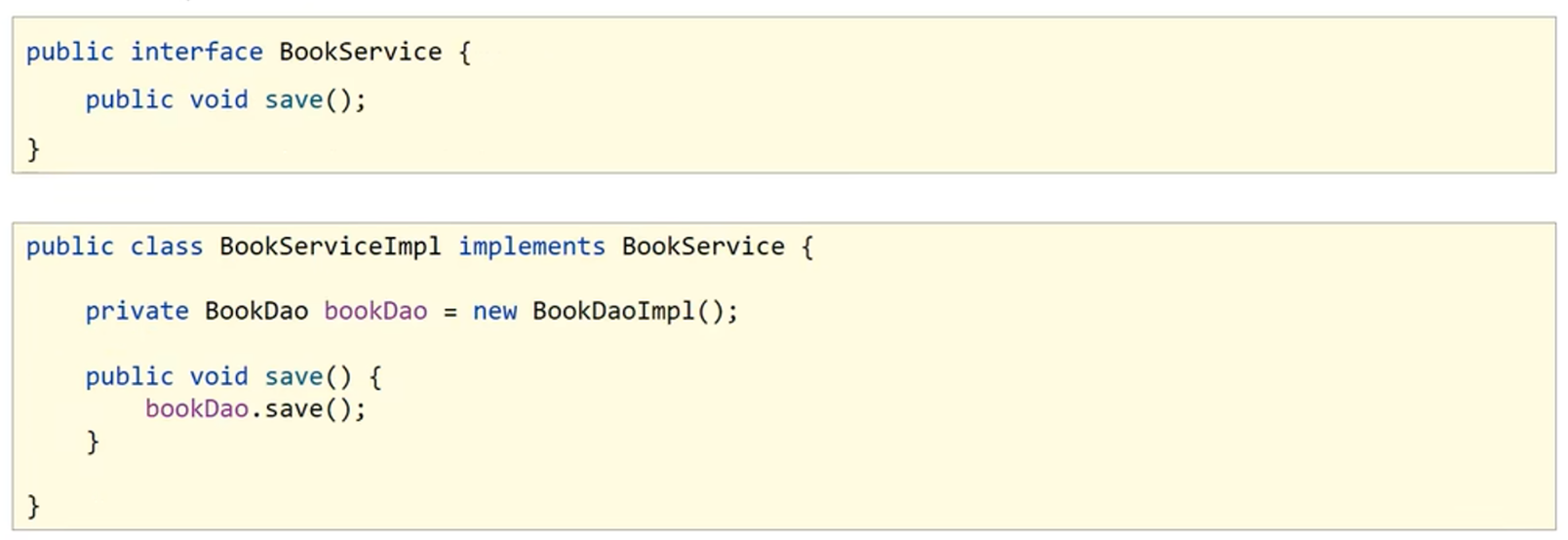- 使用对象时, 不再使用new产生对象,由Spring提供对象