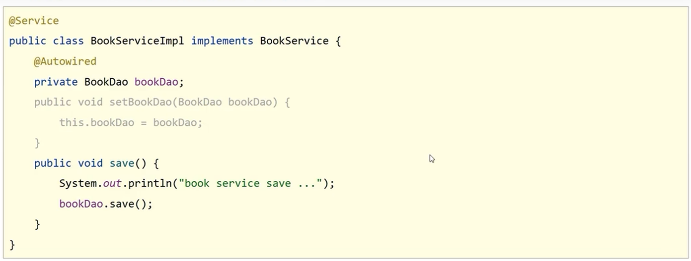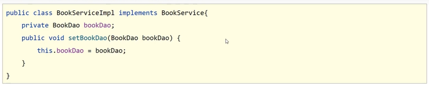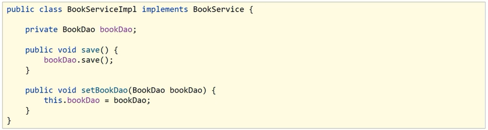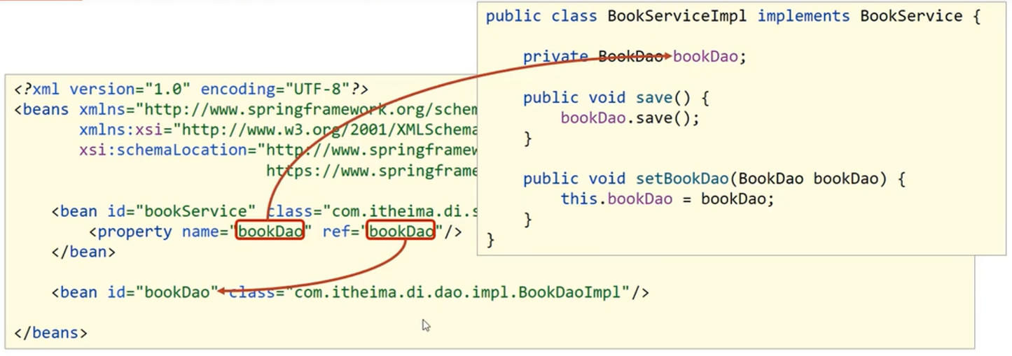 - IoC容器通过调用 setBookDao 方法, 完成对象的注入