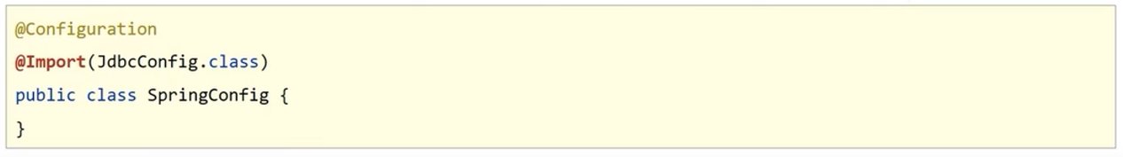 - 使用@Import注解手动加入配置类到核心配置,此注解只能添加一次,多个数据请用数组格式