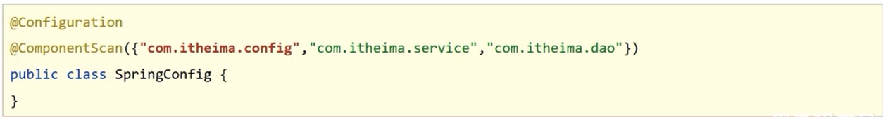 - @ComponentScan注解用于设定扫描路径,此注解只能添加一次,多个数据请用数组格式