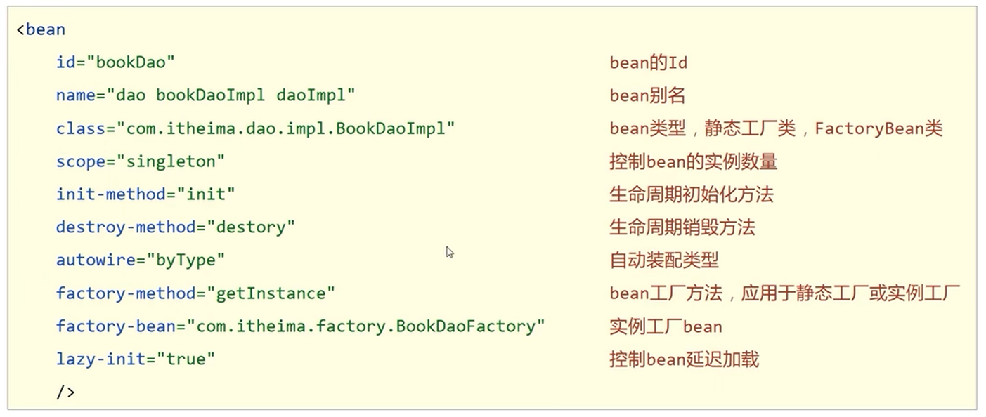 - 强调一下 配置Bean 与 配置文件 的对应关系