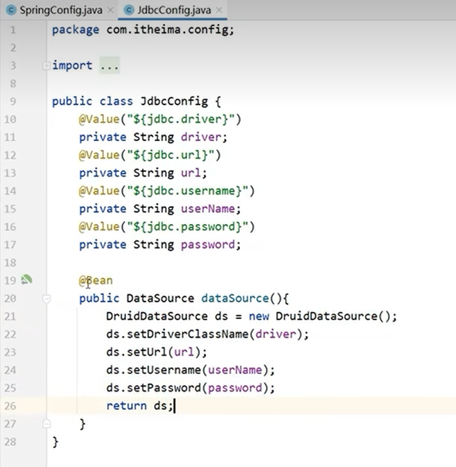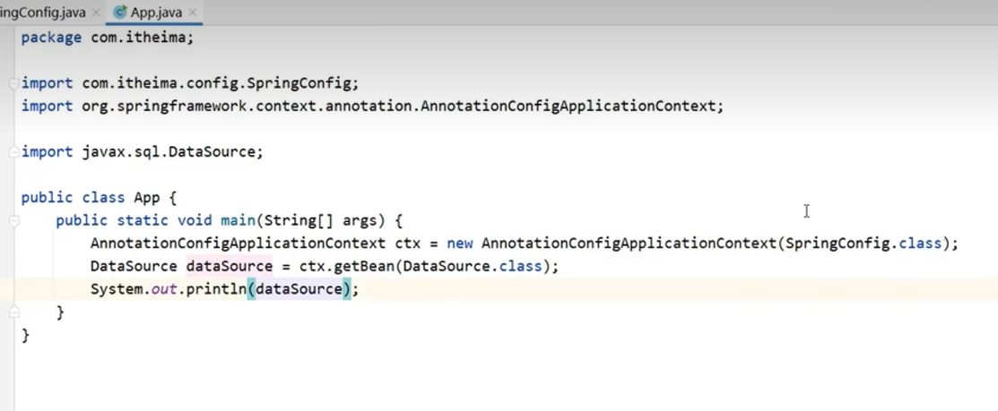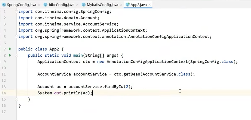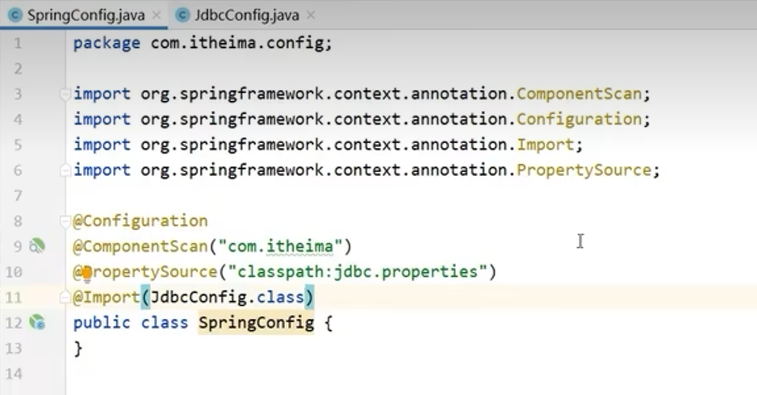 - 读取Spring核心配置文件初始化容器对象切换为读取Java配置类初始化容器对象