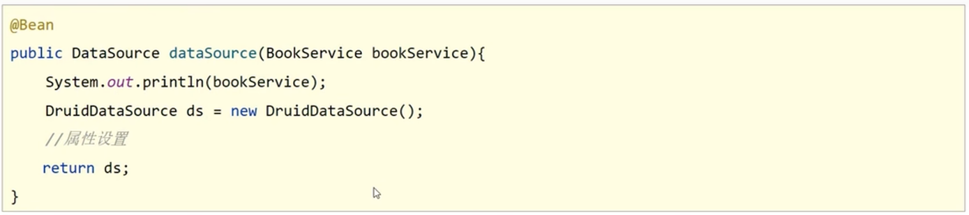 - 引用类型注入只需要为bean定义方法设置形参即可,容器会根据类型自动装配对象