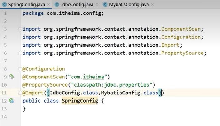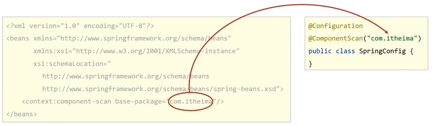 - 使用@Componentscan注解扫描配置类所在的包,加载对应的配置类信息