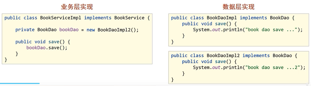 - 存在的问题: 对象与程序高度耦合, 一旦对象需要变动, 程序就要大范围改动