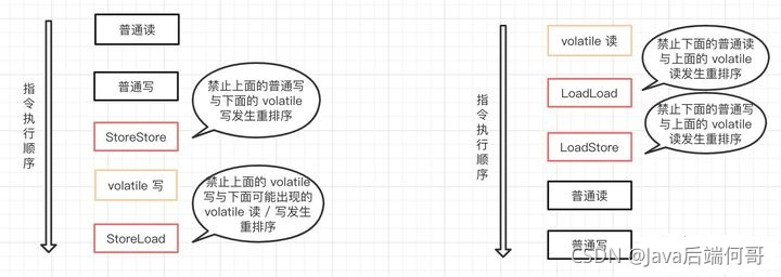 也就是说,编译器不会对 volatile 读与 volatile 读后面的任意内存操作重排序;编译器不会对 volatile 写与 volatile 写前面的任意内存操作重排序。