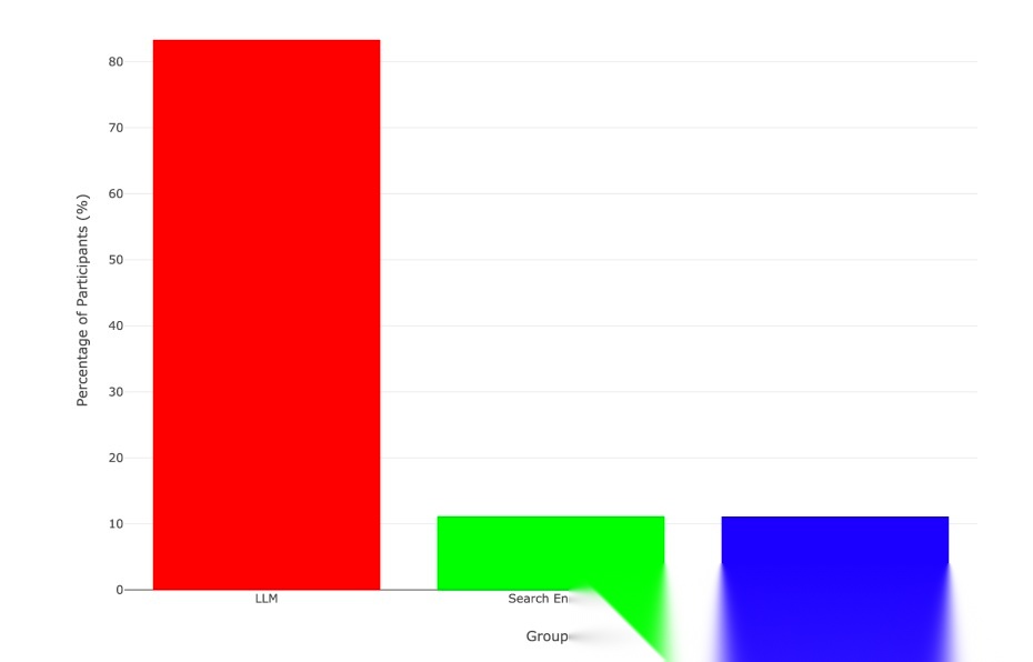 在 LLM 组中,83% 的参与者在写完论文后,几乎无法复述出自己文章中的任何观点(见下图)。而在另外两组,几乎每个人都能做到。