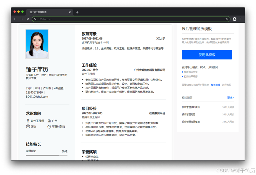 以上分享的简历案例范文,感谢您的阅读,祝每个认真求职的你都能收到满意的offer!
