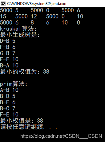 for(i=0;i<g.n-1;i++)//最小生成树,必须使用且仅使用n-1条边来连接网络中的n个顶点