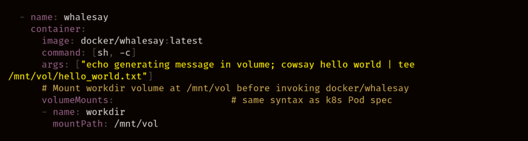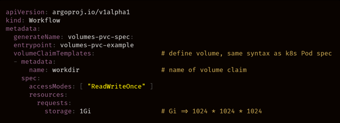 在 Workflow 的 Spec 中,我们定义一个 Volume 模板: