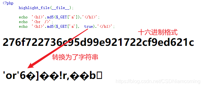 当 md5 函数的第二个参数为 true 时,返回为 字符串