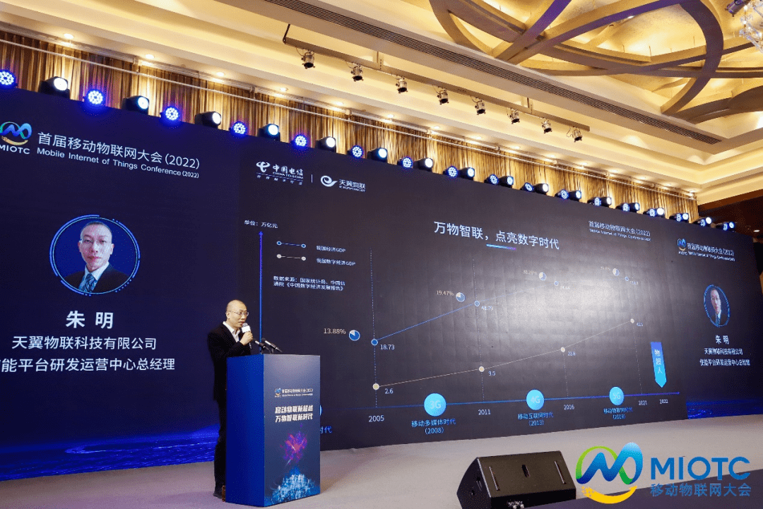 移动物联网如何切切实实赋智千行百业?天翼物联物联网研究中心总经理助理、终端与安全研发总监彭昭作《拥抱数字新时代,AIoT赋智千行百业》主题演讲,分享了中国电信从产品能力、治理应用、产业应用、民生应用、生态合作等方面赋能国民经济全领域的生动案例。