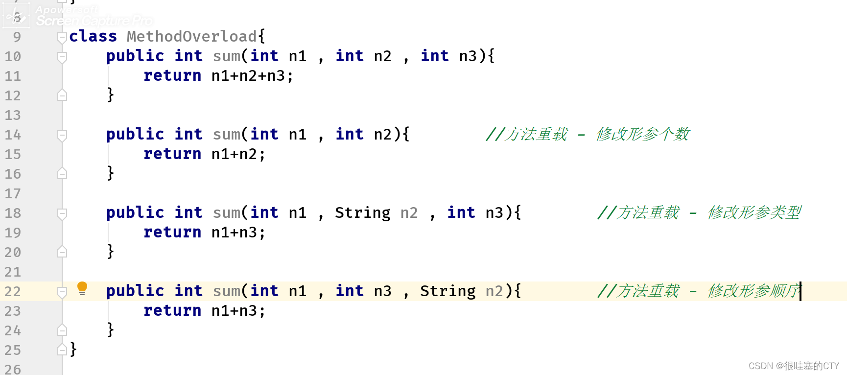 java 中允许同一个类中,多个同名方法的存在,但要求 形参列表不一致!即:方法名相同但参数列表不同即为方法的重载。