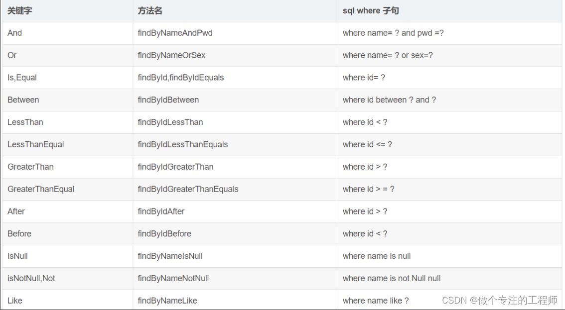 Repository 接口是 Spring Data JPA 中为我我们提供的所有接口中的顶层接口,而且是个标志接口,Repository 提供了两种查询方式的支持 1)基于方法名称命名规则查询 2)基于@Query 注解查询