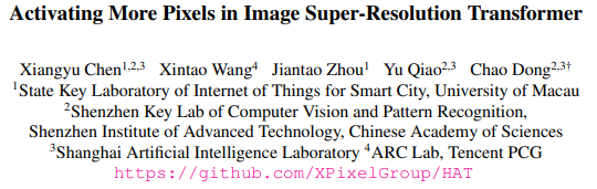 Title: Activating More Pixels in Image Super-Resolution Transformer