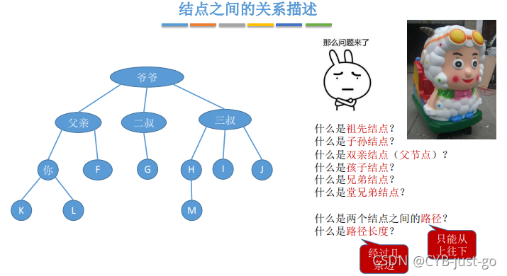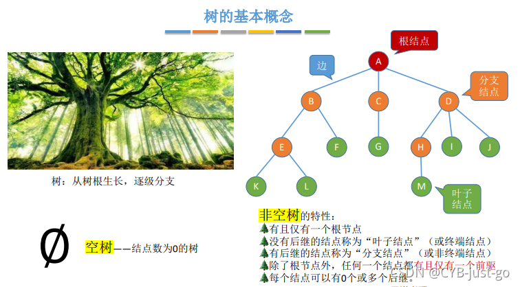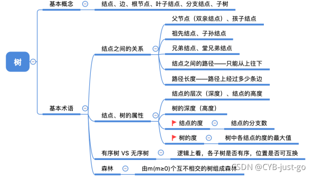目录 1 树的基本定义和术语 2 树的性质 3 二叉树定义 3.1 二叉树基本概念 3.2 二叉树分类 3.2.1 普通二叉树 3.2.2 满二叉树和完全二叉树 3.2.2 二叉排序树 3.2.3 平衡二叉树 4 二叉树性质 4.1 二叉树的共同性质 4.2 完全二叉树的性质 5 二叉树的存储结构 5.1 二叉树的顺序存储 5.2 二叉树的链式存储 5.3 二叉树的建立 5.3.1 按先序序列创建二叉树 5.3.2 先序中序建立二叉树 5.4 二叉树的遍历 5.4.1 递归实现前序,中序,后序算法 5.4.2 非递归实现前序,中序,后序 (需要自己写栈) 5.4.3 层次遍历(需要自己写队列) 6 已知遍历序列构造二叉树 6.1 前序 + 中序遍历序列 6.2 后序 + 中序遍历序列 6.3 层序 + 中序遍历序列 7 线索二叉树 7.1 线索二叉树的存储结构 7.2 中序线索二叉树 7.2.1 实现中序线索二叉树的存储 7.2.2 中序线索二叉树中找指定结点的前驱和后继 7.3 前序线索二叉树 7.3.1 前序线索二叉树的存储 7.3.2 先序线索二叉树中找指定结点的前驱和后继 7.4 后序线索二叉树 7.4.1 后序线索二叉树的存储 7.4.2 后序线索二叉树中找指定结点的前驱和后继 8 求叶子节点 9 求树的深度 10 判断一棵树是否为完全二叉树 11 链式二叉树-链栈链队列存储结构完整代码 12 链式二叉树-顺序栈循环队列存储结构完整代码 13 树的存储结构 14 树和森林的遍历 14.1 树的先根遍历 14.2 树的后根遍历 14.3 树的层次遍历 14.4 森林的先序遍历 14.5 森林的中序遍历 15 二叉排序树(BST) 15.1 二叉排序树的概念 15.2 二叉排序树的查找 15.3 二叉排序树的插入 15.4 二叉排序树的构造 15.5 二叉排序树的删除 15.6 二叉排序树的查找效率分析 16 平衡二叉树 (AVL) 16.1 平衡二叉树的定义 16.2 平衡二叉树的插入 16.3 平衡二叉树查找效率分析 17 哈夫曼树 17.1 带权路径长度 17.2 哈夫曼树的定义 17.3 哈夫曼树的构造 17.4 哈夫曼树性质 1 树的基本定义和术语