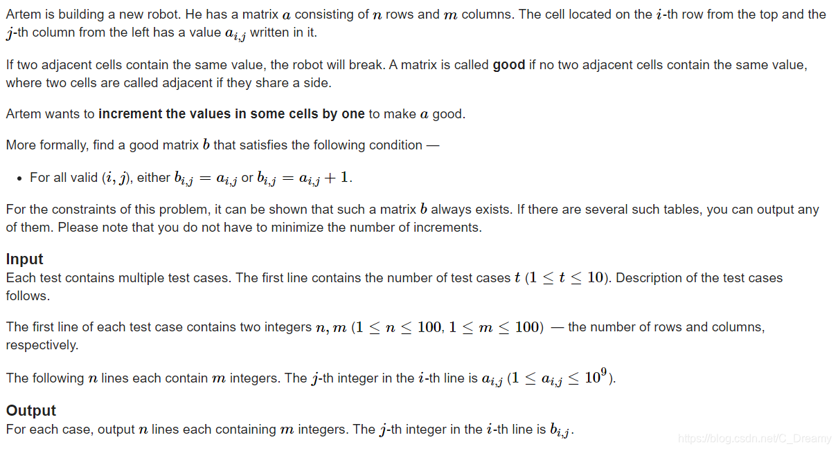 有 n*m 的方格,构造一个方格每个方格与其上下左右四个方格各不相同,但是构造的方格必须是由原来的方格 +1 或 不变得来的