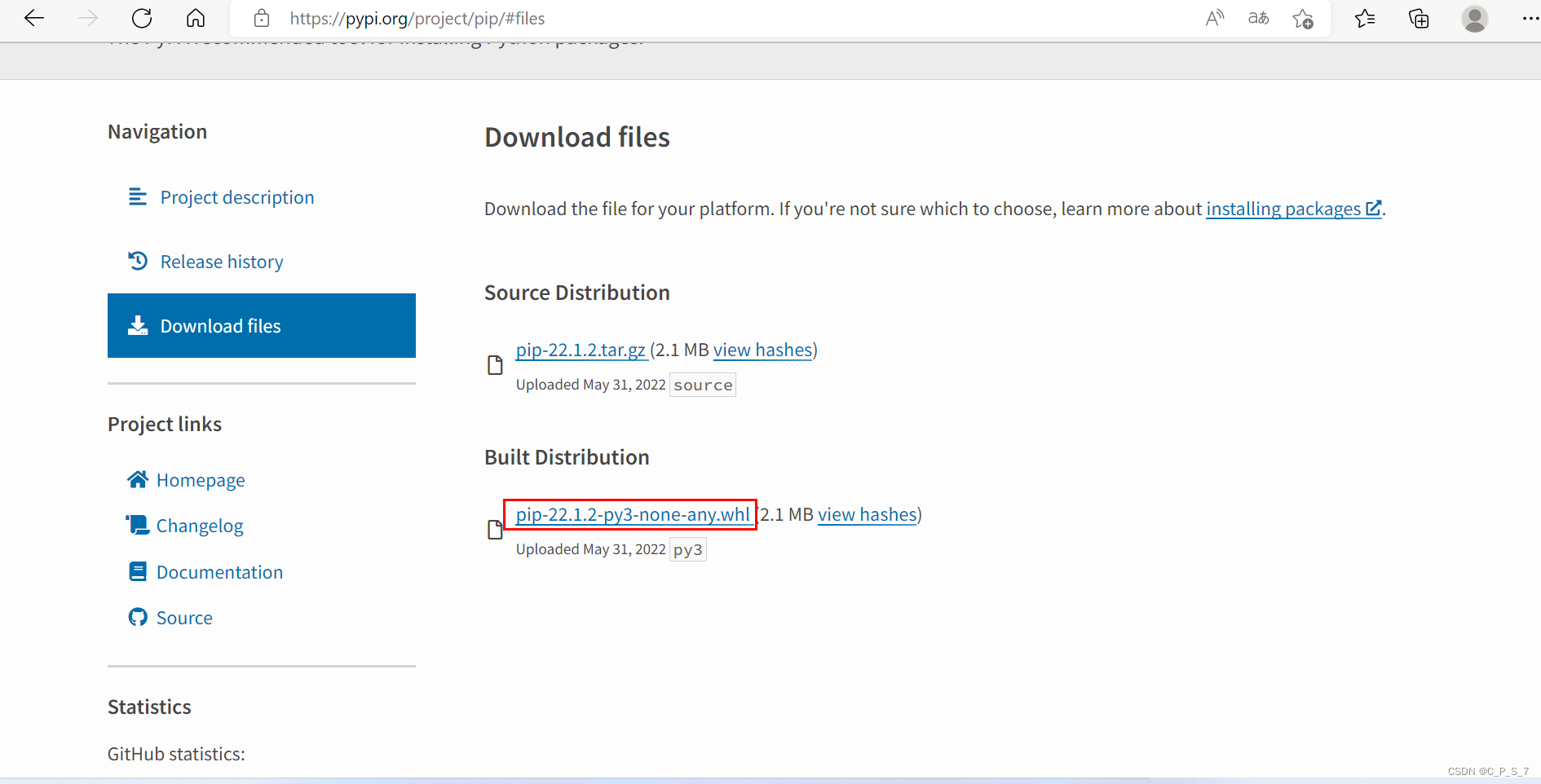 向下拉,找到whl文件并点击