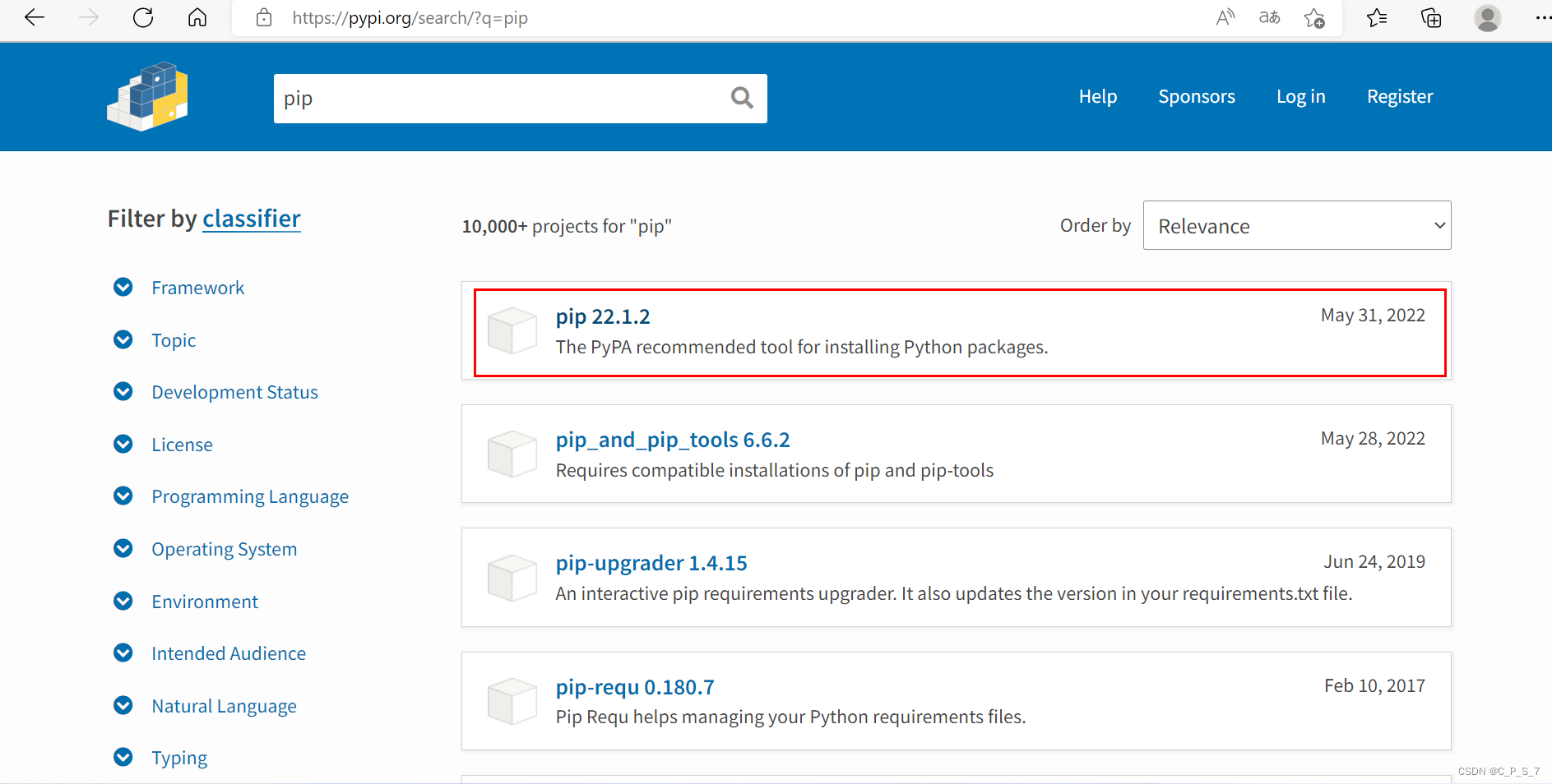 搜索后,会弹出pip的历史版本,小编建议选择最新版