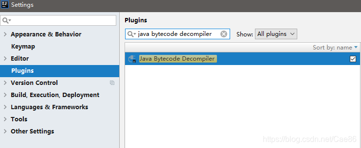 idea 不能正确反编译class idea都是自带反编辑插件的,如果发现不能正确编译了,一般是因为插件没有启用进入settings->plugins 搜索 Java Bytecode Decompiler 把这个插件勾上就OK了.