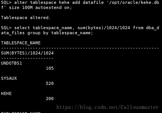 案例:修改表空间hehe大小,修改为200M,并支持自动扩展