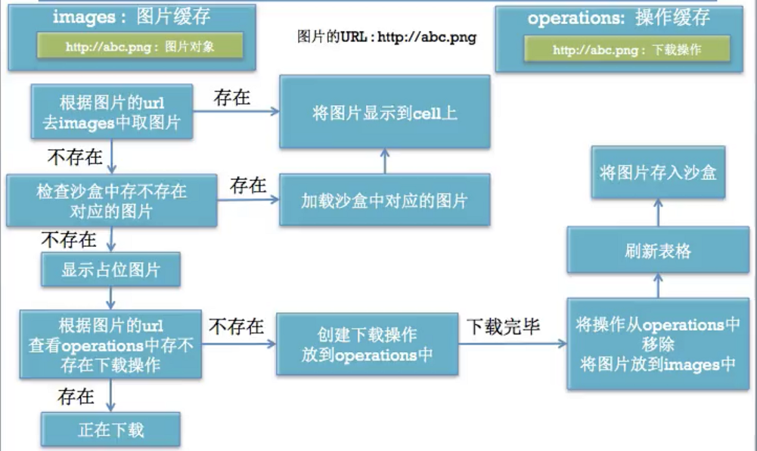 - 如果沙盒中的图片不存在,下载图片并保存到沙盒中