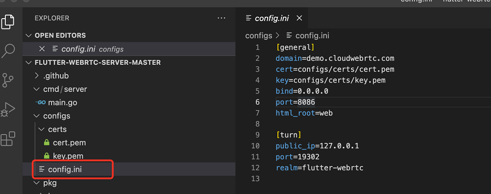 INF Flutter WebRTC Server listening on: 0.0.0.0:8086