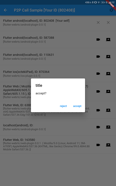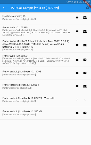 - Flutter-android(localhost),ID:007252[your self],是当前设备