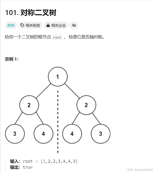 这道题的思想与之前的相同的树题目类似。区别就在于这道题比较的是镜面对称,所以在比较对象上面需要留意。
