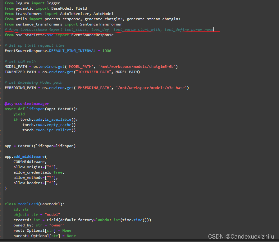 ModuleNotFoundError: No module named ‘tools.schema‘ 打开openai_api_demo/api_server.py这个文件,然后把这一行给注释了就可以运行了。