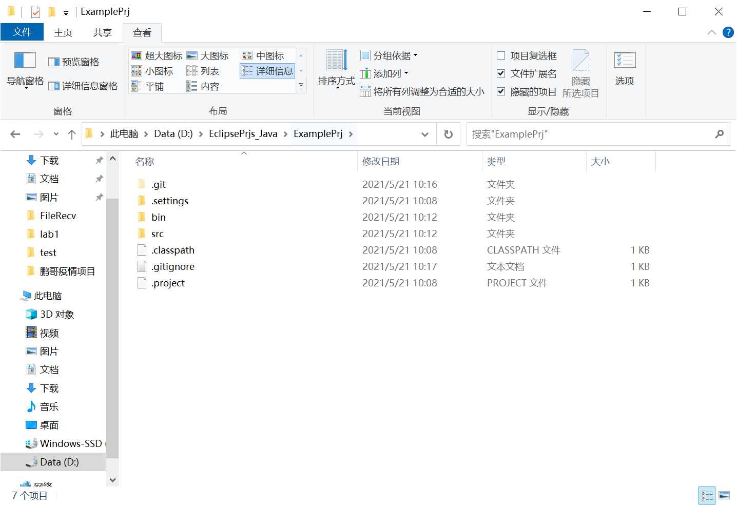 先打开刚刚创建的项目目录,并允许查看隐藏文件夹。可以看到该目录下有一个隐藏的.git文件夹,证明我们刚刚的git初始化流程没有问题。