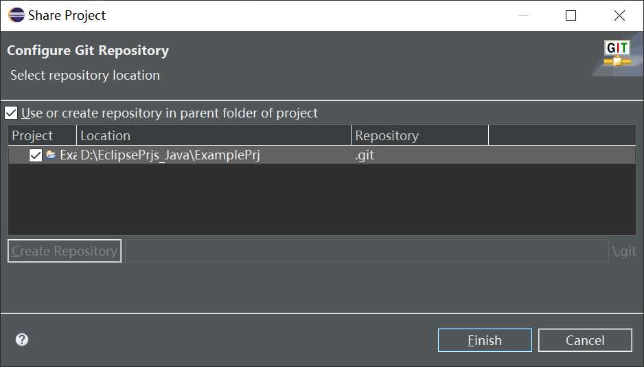 然后你会看到这样的框,证明本地的git项目已经初始化完成了,可以点一下Finish。