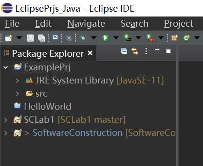 创建成功,在Package Explore中可以看到刚刚创建的项目ExamplePrj。