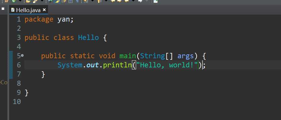 这里我们随便编写一个Hello类,并输出Hello world.
