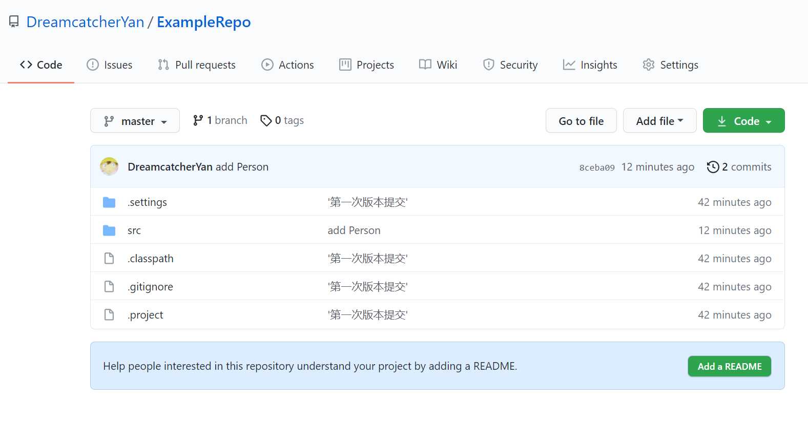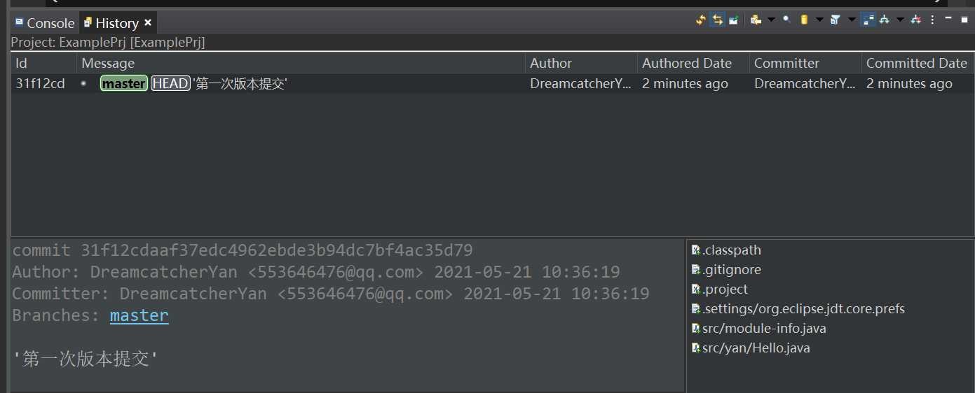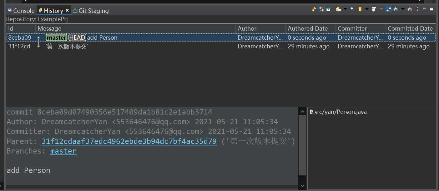 然后再看history,就能看到刚刚对Person.java的commit了。